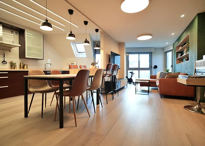 El GALIHOST - Apartamento con terraza en Vilagarcía de Arousa está situado a unos 10 minutos en coche del Pazo do Lagar, y a tan solo 1 km de la Playa de Compostela. Este apartamento de 80 m², con una terraza con vistas a la ciudad, está situado al alcance del Bolera Strike Center Villagarcia.
